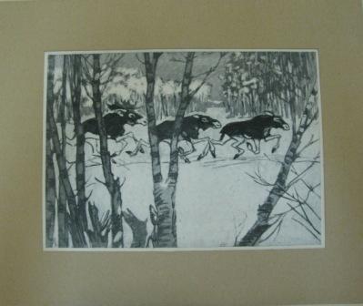 Первой представленной работой мастера стала гравюра «Эхо далёкого выстрела», Минск, 1968 г.